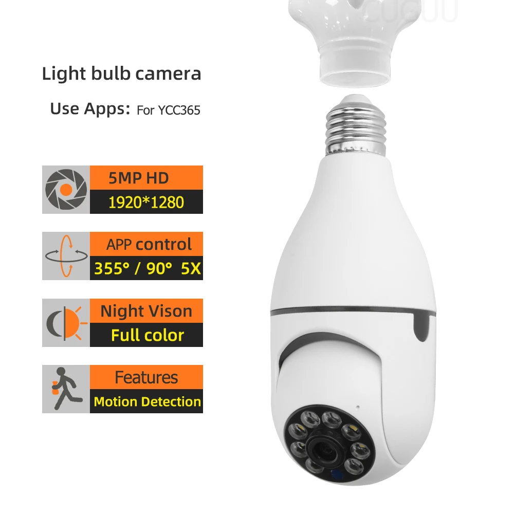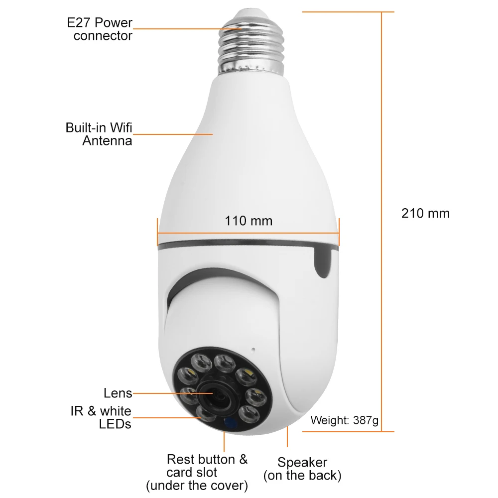 1. Функция: держатель лампы-это универсальный E27 держатель лампы, просты в установке, двухдиапазонный, Wi-светильник поддержка светильник ing, 360 градусов Панорамное вращение угол зрения, мобильный телефон Удаленный просмотр Wi-Fi связь, интеллектуальное обнаружение движения человека и аномальная сигнализация экрана, Камера, когда кто-то ломается, обнаруживается, что она может активно звуковой сигнал и вспышка, интеллектуальный двусторонний голосовой Интерком в реальном времени, 2 миллиона пикселей высокой четкости, максимальная поддержка карты памяти 128G, поддержка облачного хранилища и хранения tf-карт.