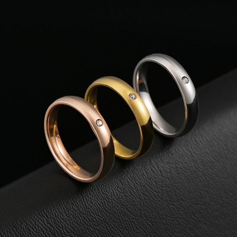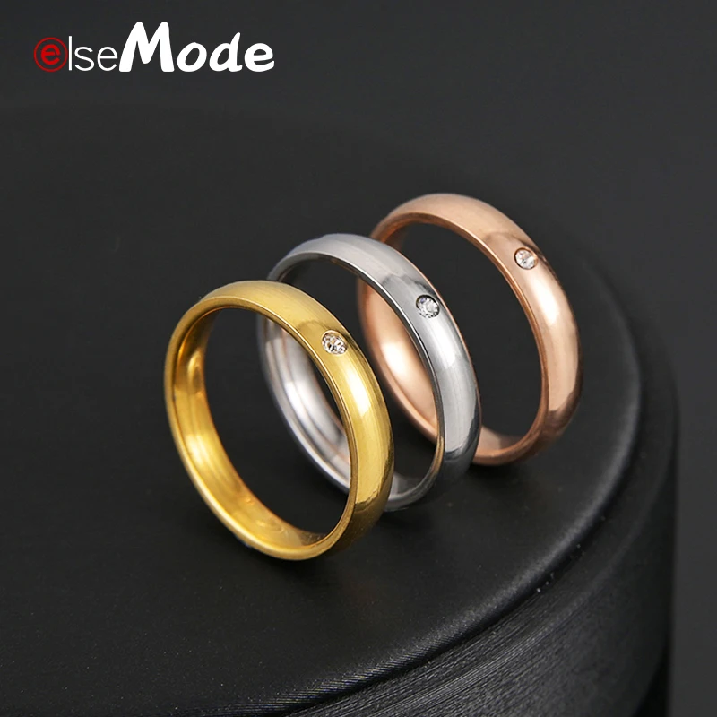 Обручальные кольца ELSEMODE из нержавеющей стали, 4 мм, с крошечным кубическим цирконием, женские элегантные кольца, ювелирные изделия, дропшиппинг