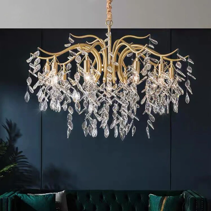 Европейские светодиодсветодиодный хрустальные люстры, Золотая люстра, роскошное освещение для кухни, столовой, гостиной, спальни, подвесной светильник