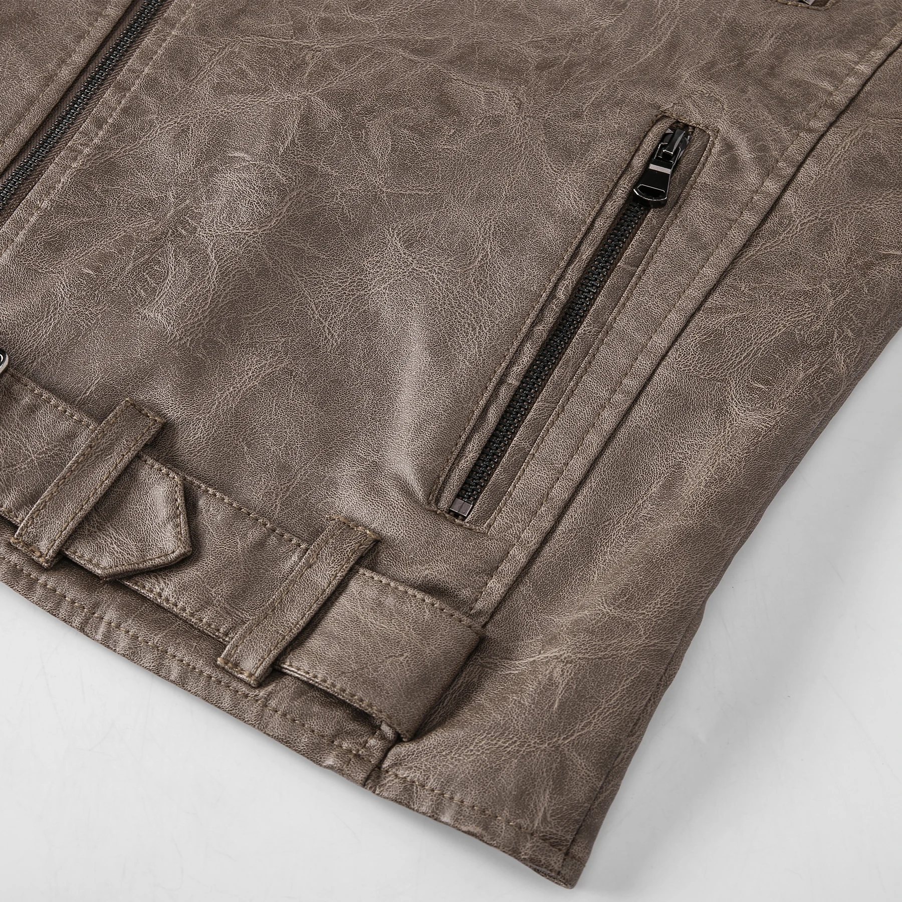 Мужская мотоциклетная куртка с карманами, Классическая кожаная курт...