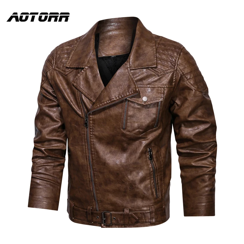 Мужская повседневная Толстая мотоциклетная куртка, Мужская кожаная ...
