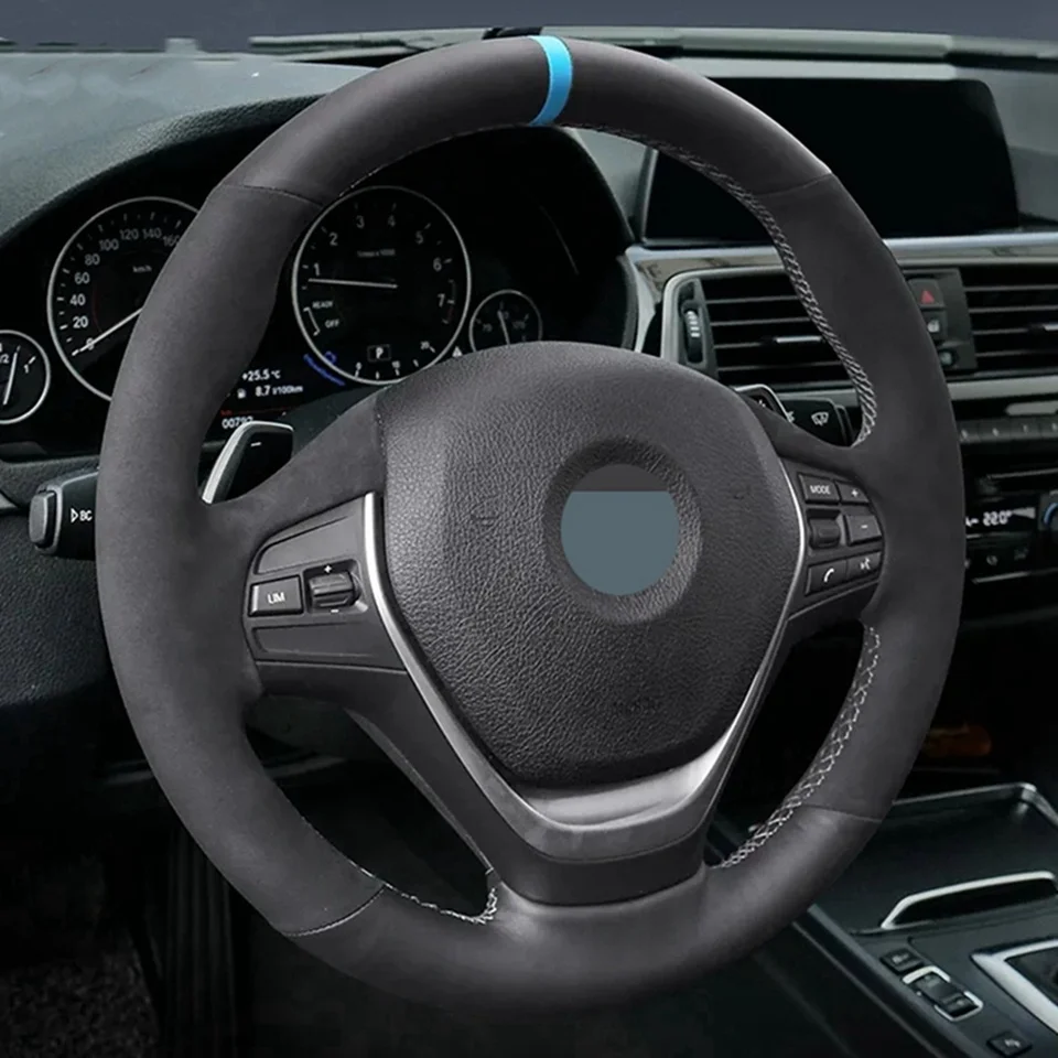 Черная кожа Алькантара Замша Чехол рулевого колеса автомобиля для B...