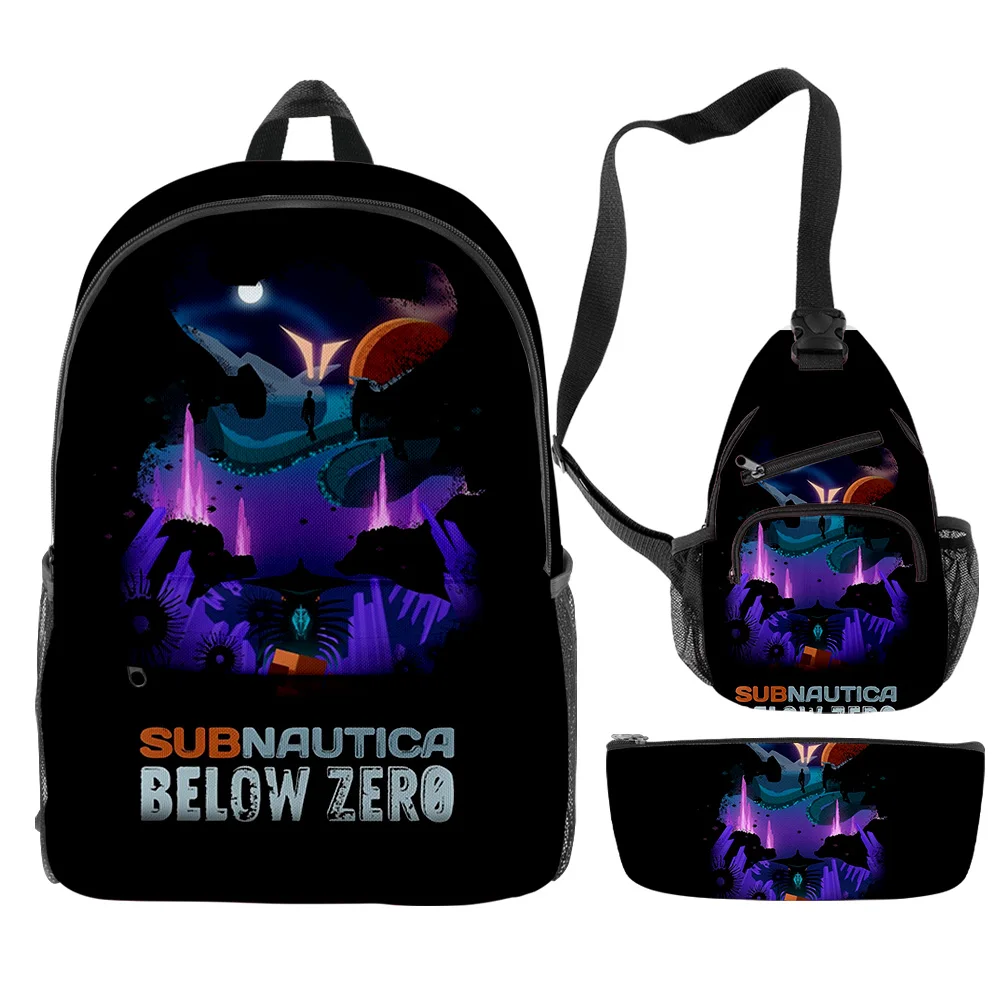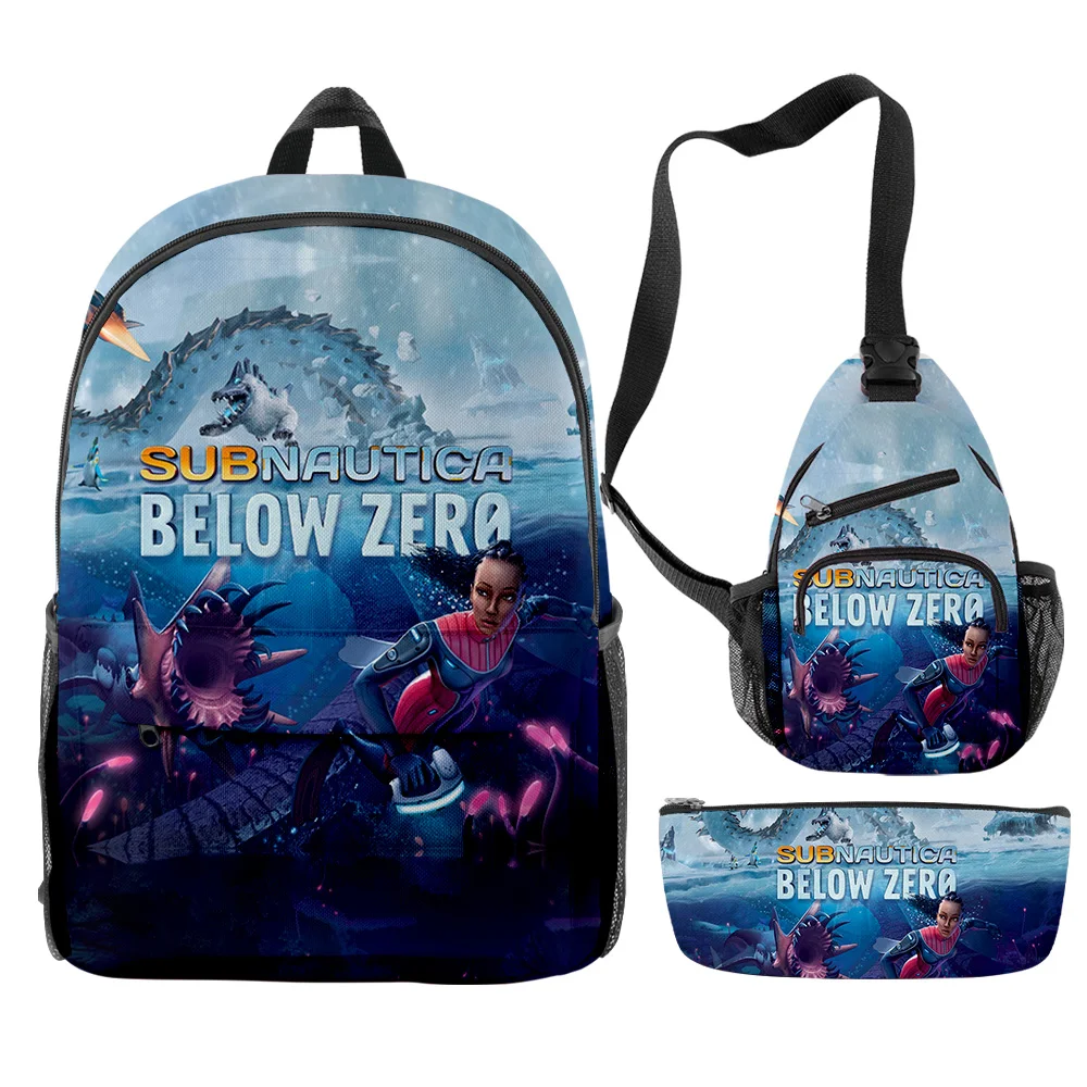 3 шт.компл. Subnautica рюкзак для мальчиков и девочек, школьный портфель, нагрудная сумка, чехол-карандаш для женщин и мужчин, водонепроницаемый повседневный рюкзак для ноутбука