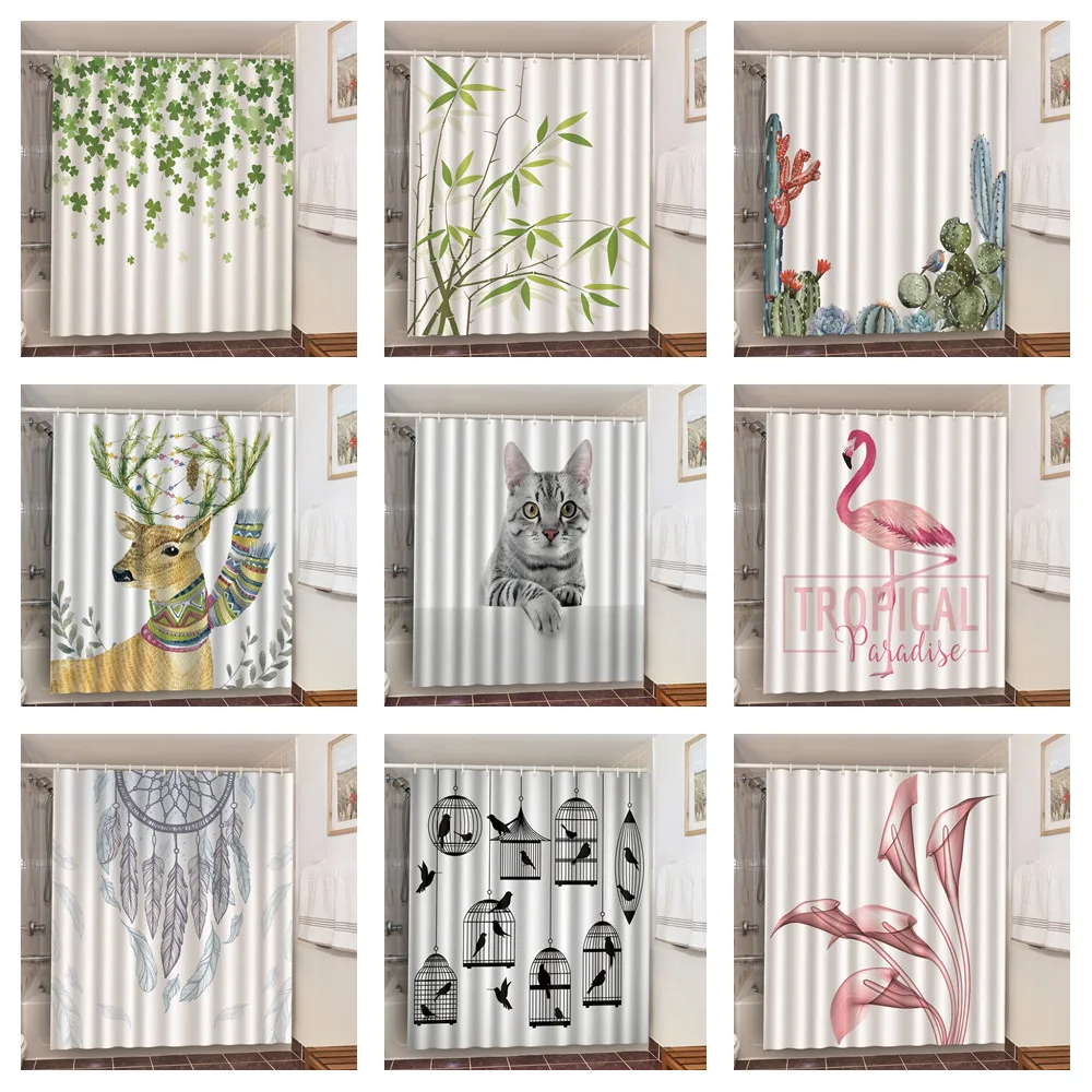Занавески для душа, пастельные белые, моющиеся, с четырехлистным клевером, с принтом пингвинов, для ванной, туалета, домашний декор, Douchegordijn
