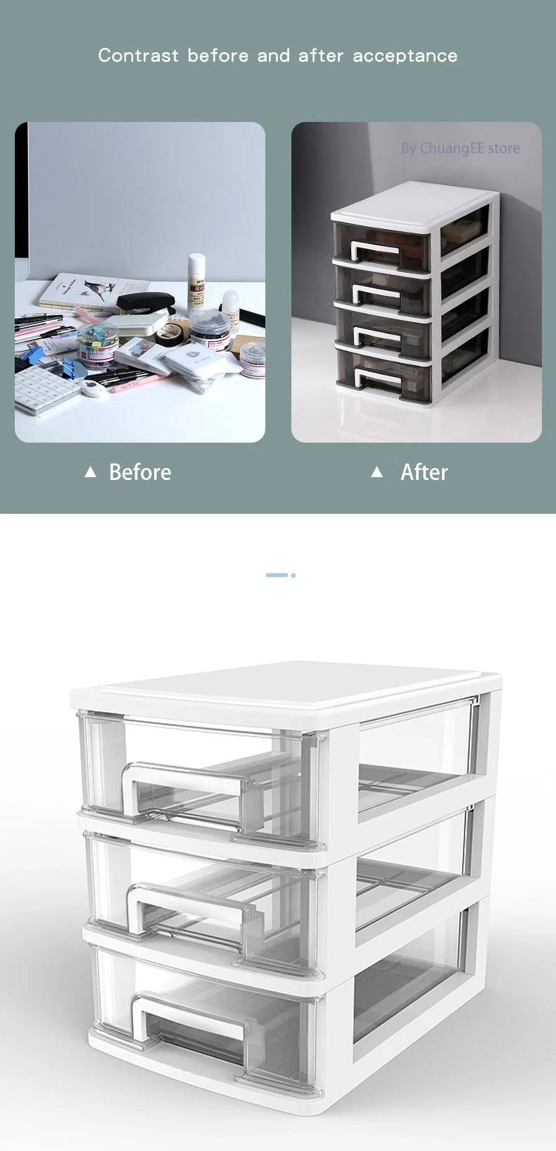 Пластиковый Настольный ящик, прозрачный органайзер для мелочей и ме...