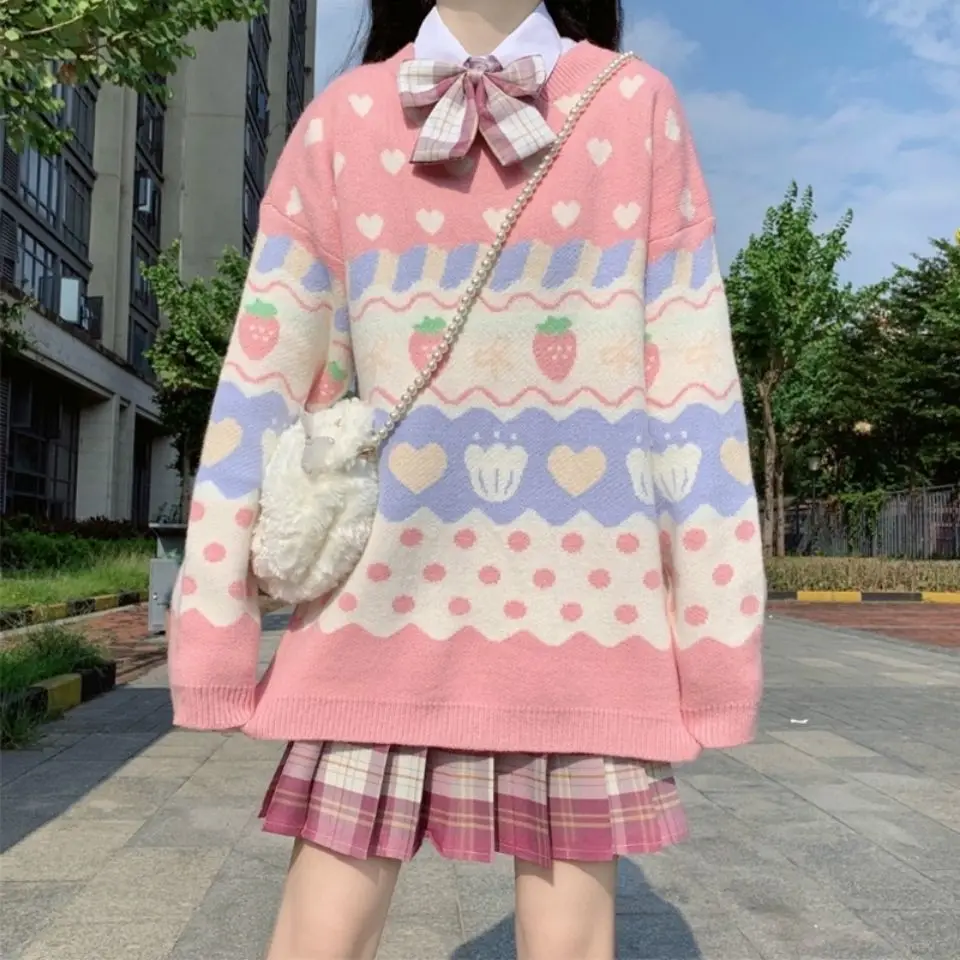 Свитер женский в японском стиле Kawaii Ulzzang, свободный винтажный...