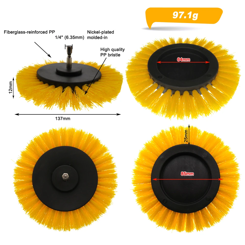 Кисть для сверления Желтая средняя кисть для ковра предназначена для тщательной очистки ковров, ванной, плитки и пола.