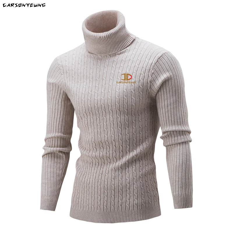 Мужской трикотажный свитер с длинным рукавом и высоким воротом