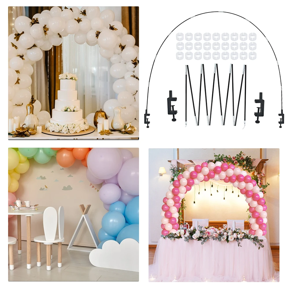 2. Поставляются с арочными пряжками, которые помогут Легко отобразить ваши воздушные шары, легко собрать и разобрать эту арку шара на столе с меньшими усилиями, экономия труда для настройки и экономии пространства, когда не используется.