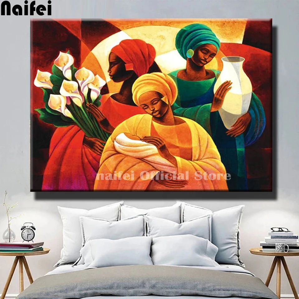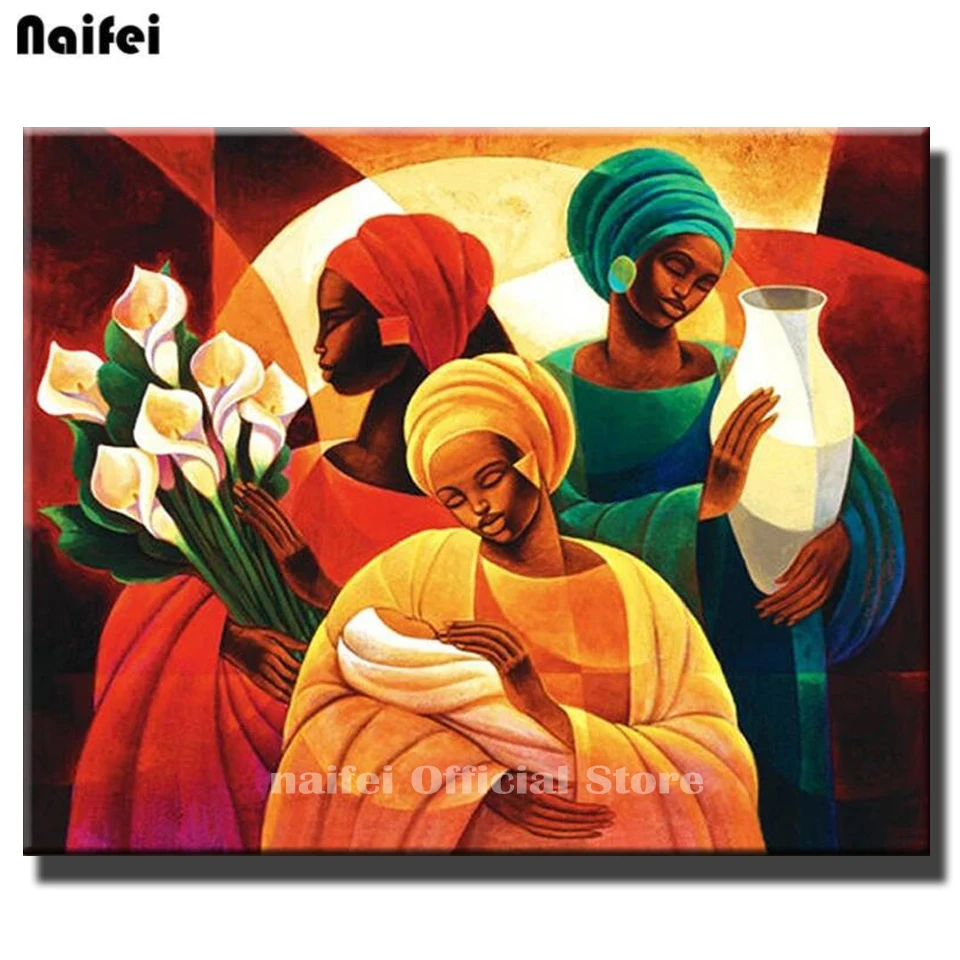 Полная квадратная круглая алмазная живопись, Африканская женщина и ребенок, вышивка крестиком, алмазная вышивка, цветок, искусство на стене, Декор