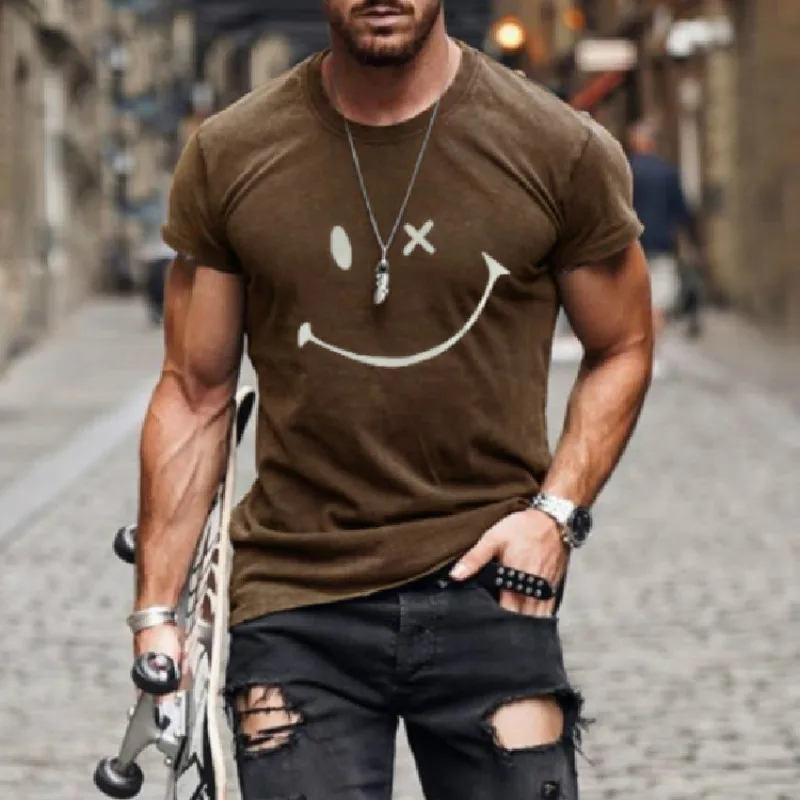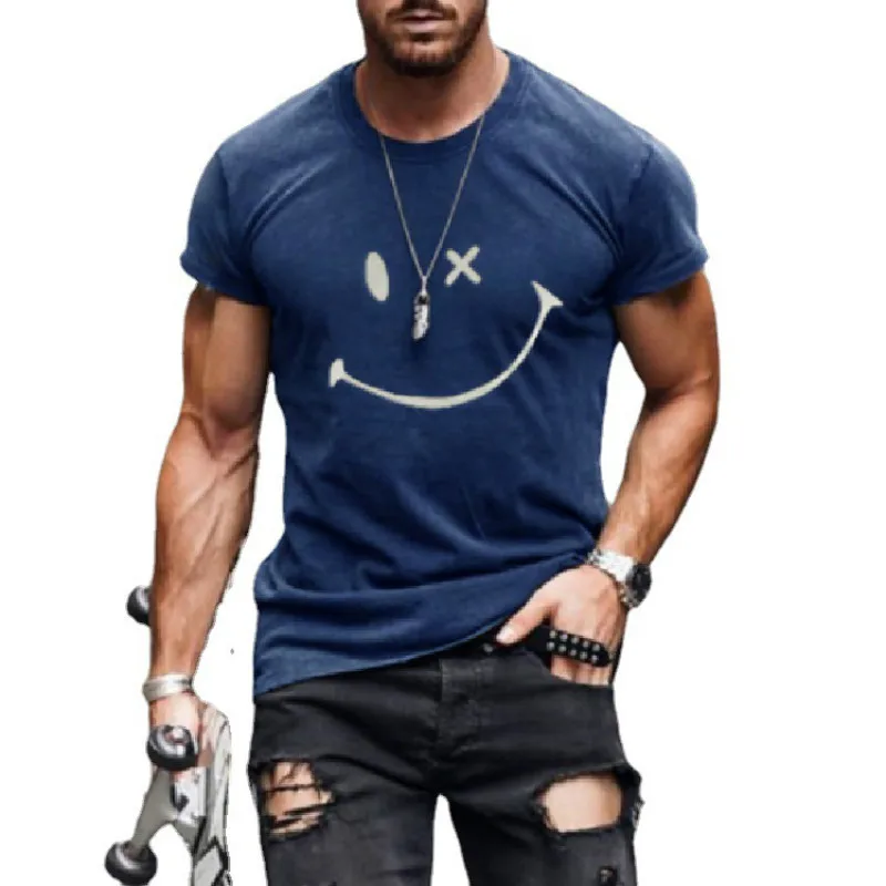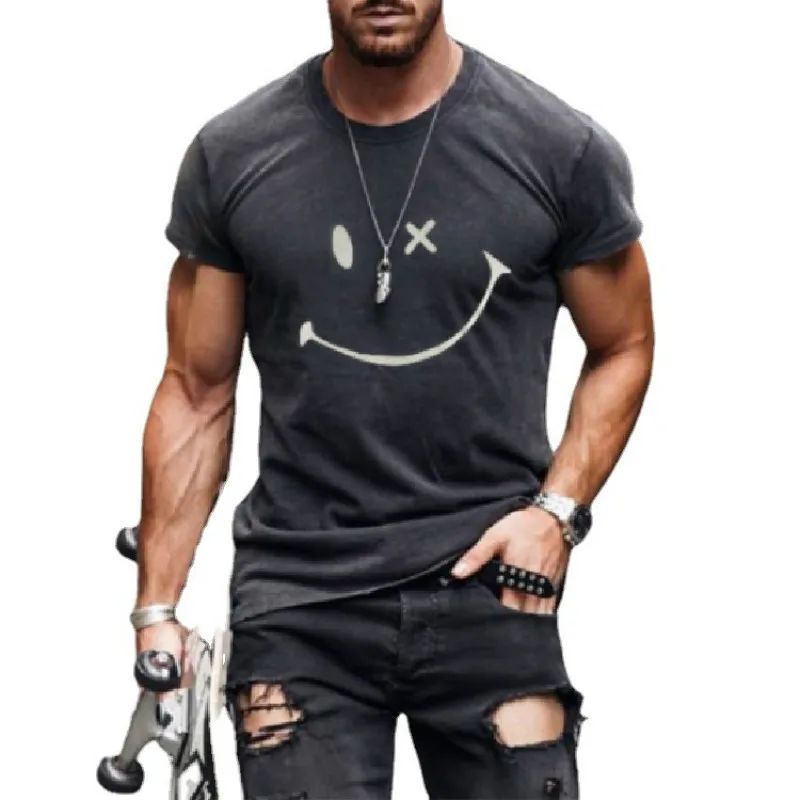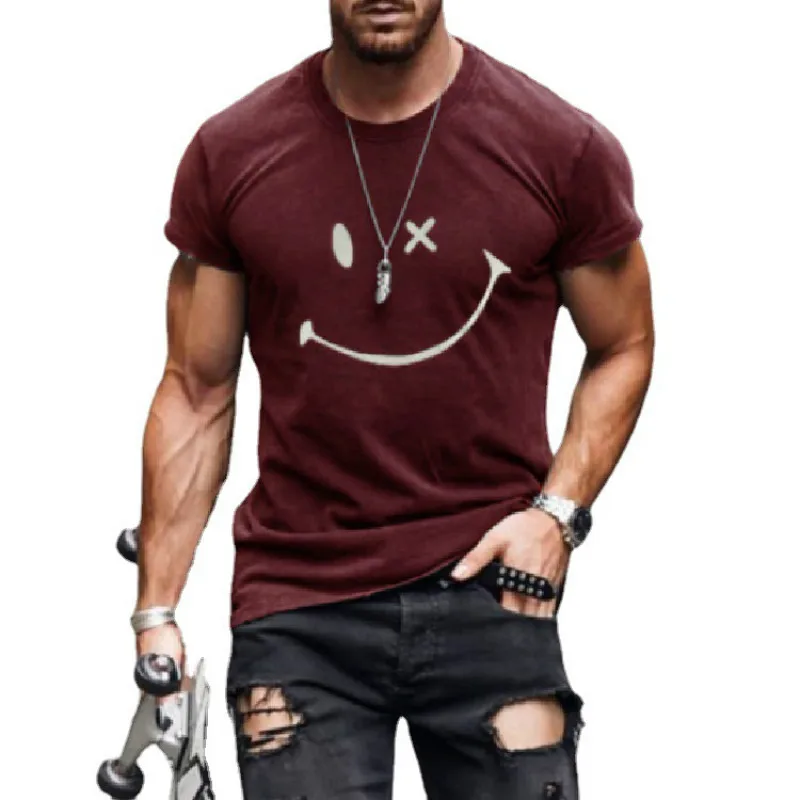 Новинка 2021, мужская летняя футболка с 3d принтом, женская спортивная модная повседневная свободная футболка с коротким рукавом и смайликом