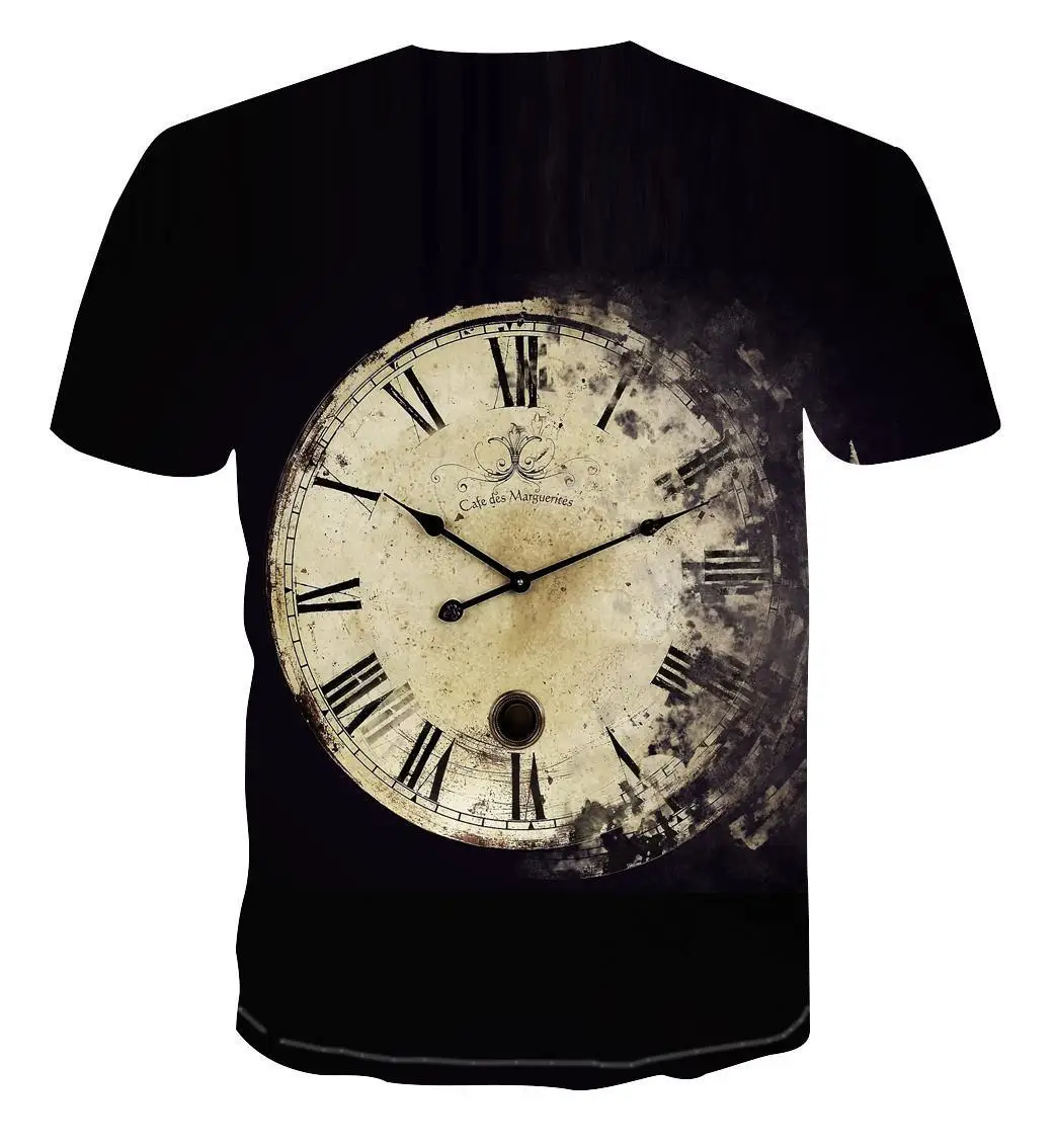 Футболка мужская оверсайз с геометрическим рисунком, модный топ с коротким рукавом, с персонализированным 3D-принтом и часами, уличный стиль, XXS-6XL, на лето