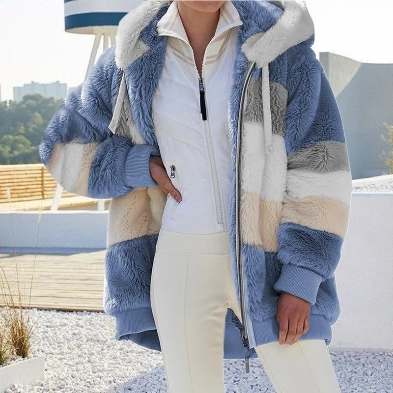 Женское кашемировое пальто с капюшоном, Повседневная зимняя клетчатая куртка на молнии, 2021