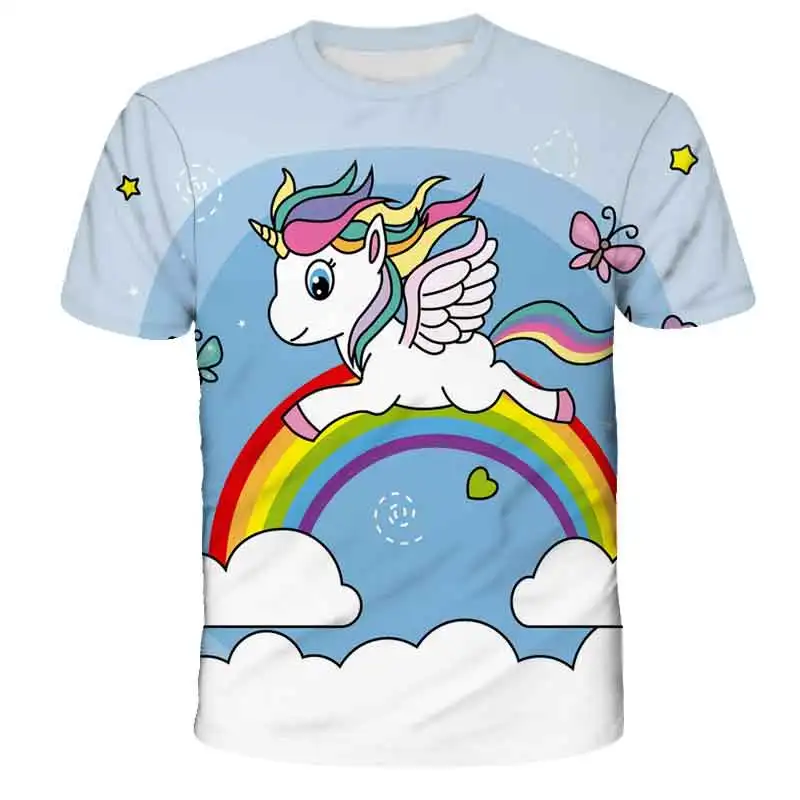 Футболка с единорогом, летняя футболка, мультяшная 3D-печать, мульт...