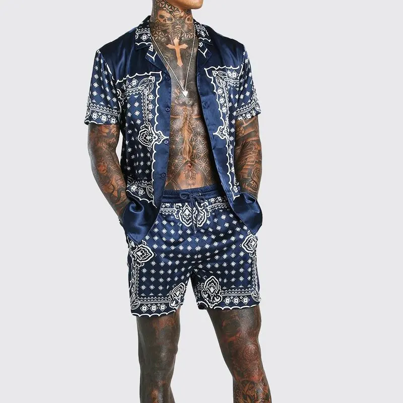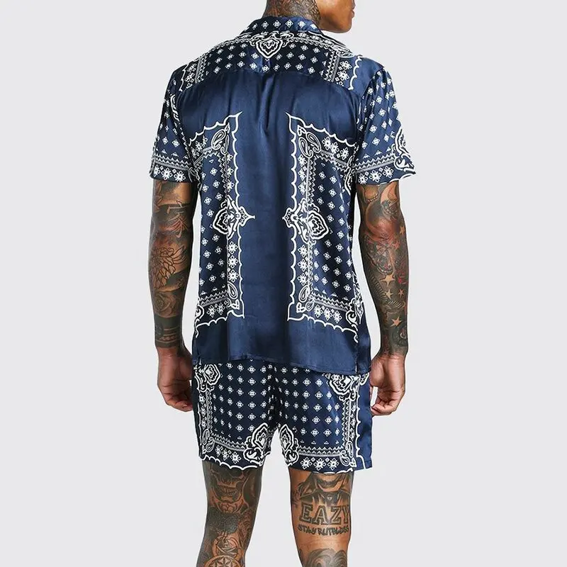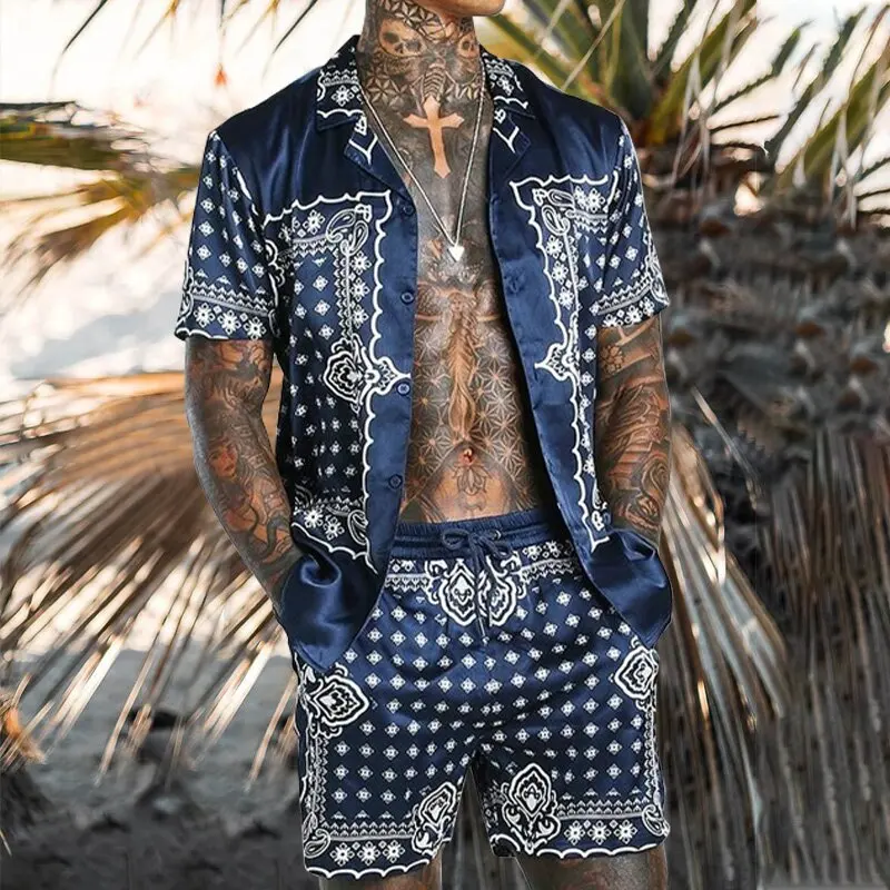 Лето 2021 Новинка Мужская одежда Гавайская Свободная рубашка с принтом на пуговицах с короткими рукавами пляжные шорты уличный костюм повседневная мужская одежда