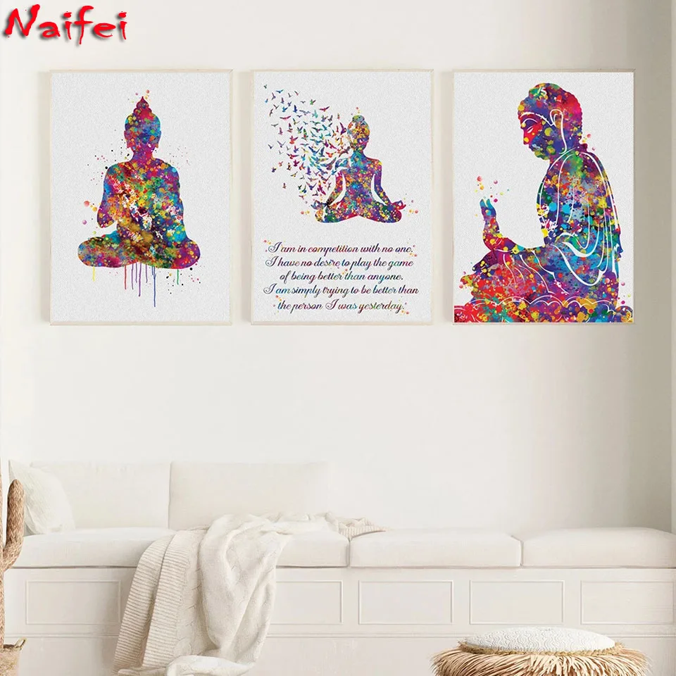 Медитация Алмазная Картина абстрактный Будда, Йога-арт мотивационные наборы крестиков буддистский постер для гостиной домашний декор
