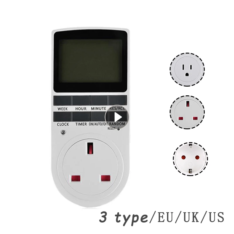 Электронный цифровой таймер с вилкой для ЕС, Великобритании и США, домашняя кухонная розетка с таймером, 230 В, 50 Гц, программируемая розетка с таймером на 7 дней и 1224 часов