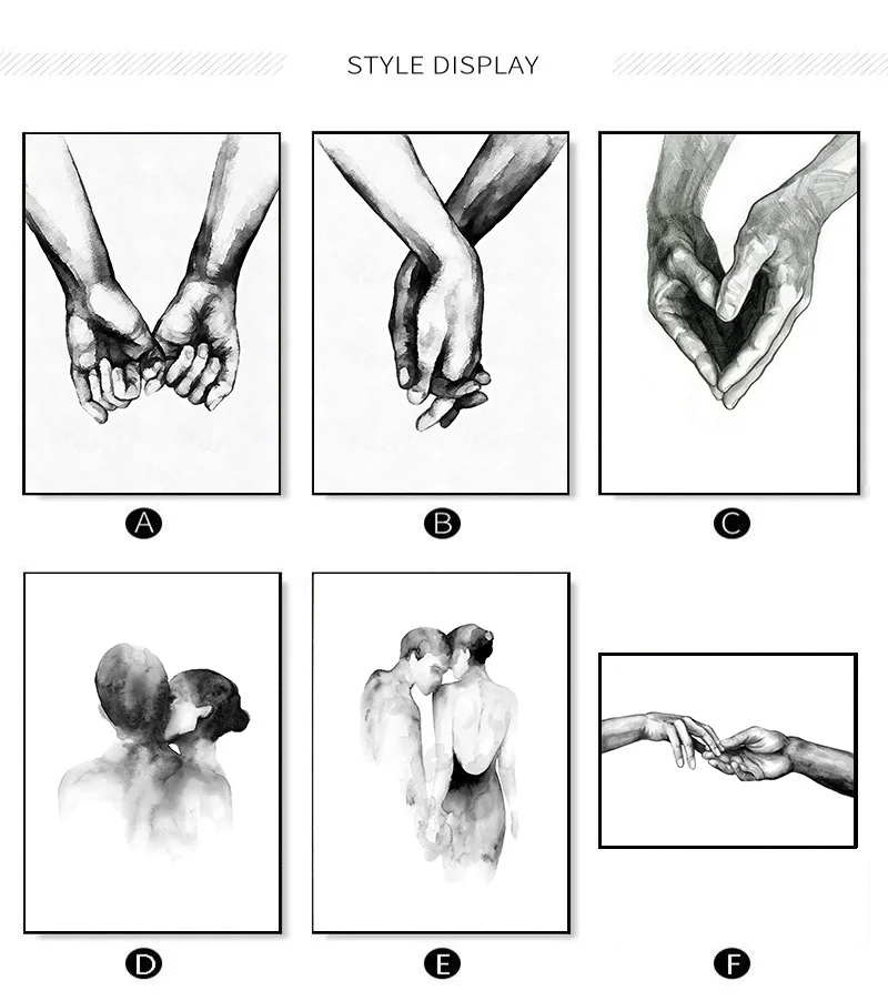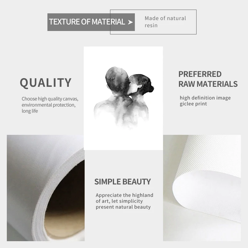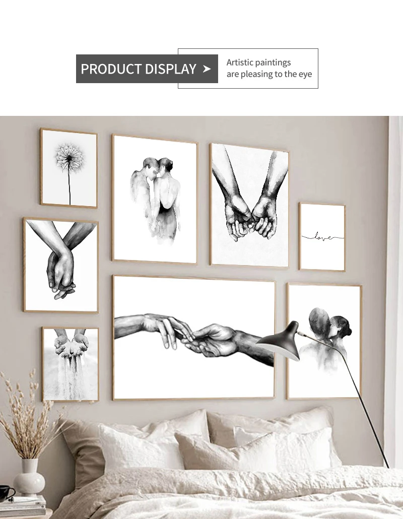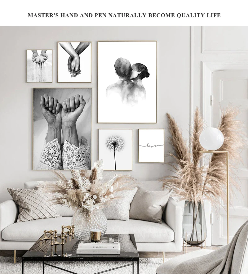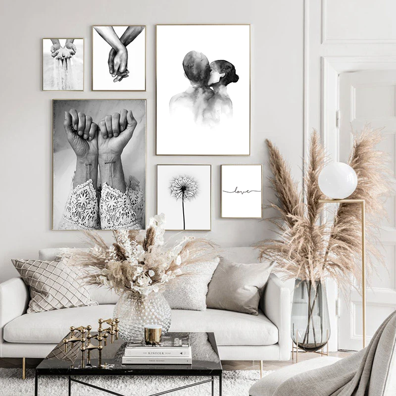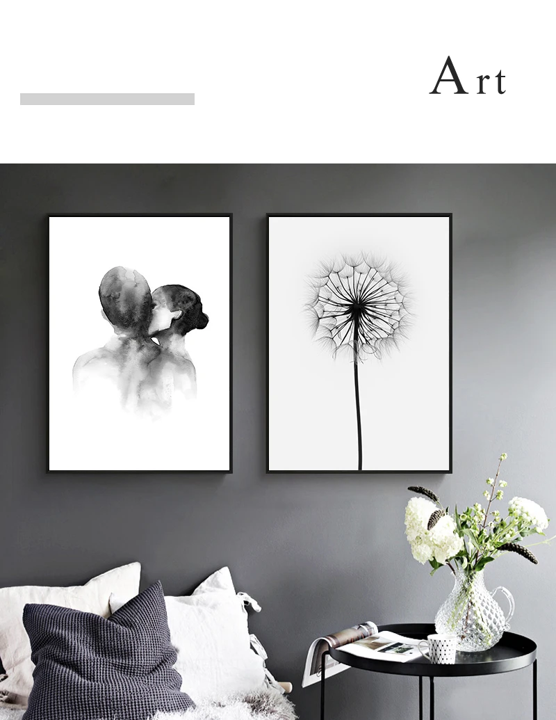 Nordic черный, белый цвет Поцелуй Ручная Аватар Wall Art Холст плак...