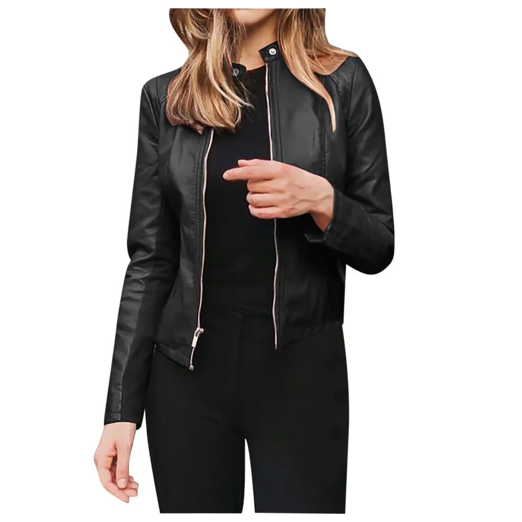 Женский короткий кардиган из ПУ кожи, с длинным рукавом