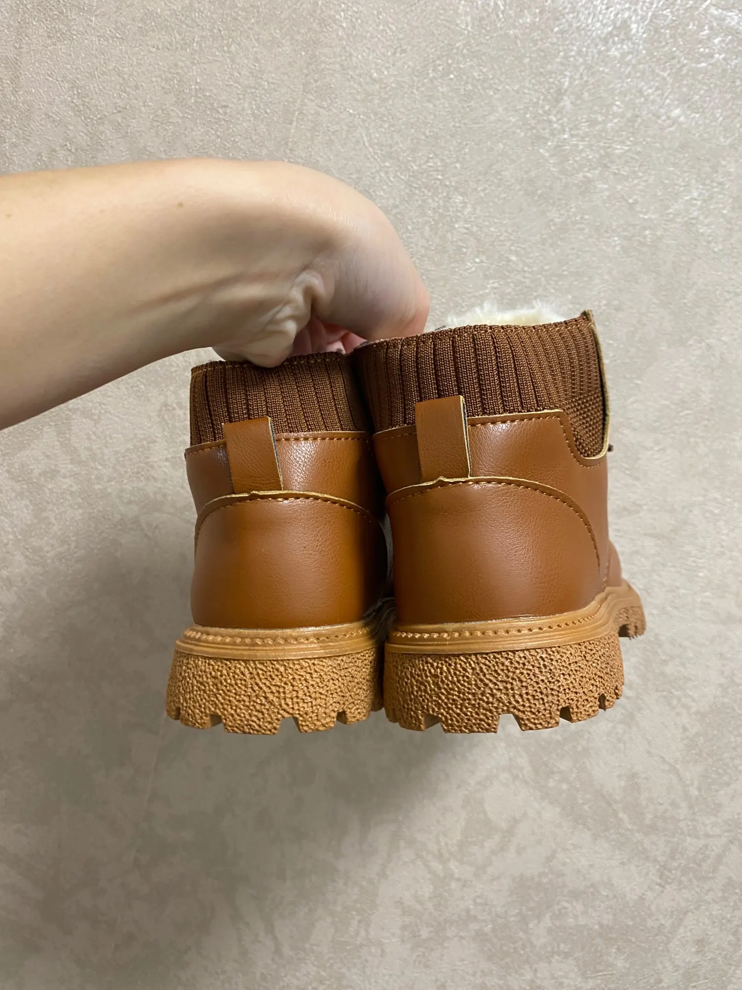 Уютные Детские зимние ботинки с плюшевой подкладкой, Нескользящие, с мягкой подошвой и сетчатым материалом, зимняя обувь для маленьких мальчиков и девочек E08061