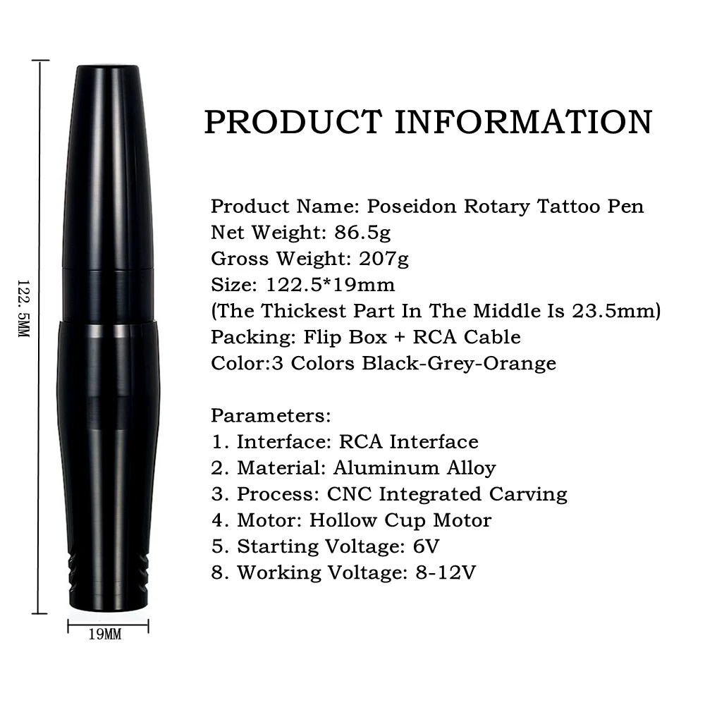 Посейдон роторная татуировочная ручка роторная татуировочная Пушка машина без сердечника мотор из алюминиевого сплава Электрический RCA мотор тату машина