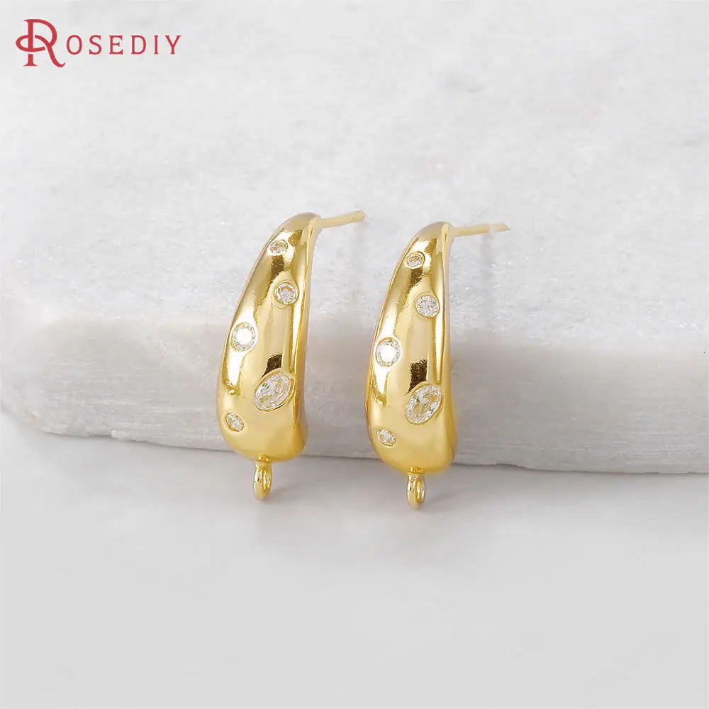 Серьги-гвоздики из латуни и циркона, 2 шт., 18 х6 мм