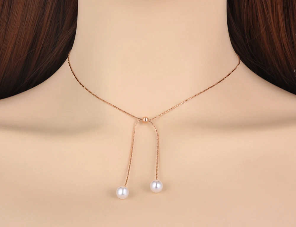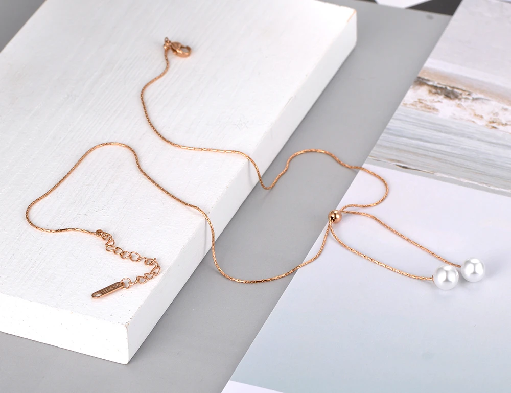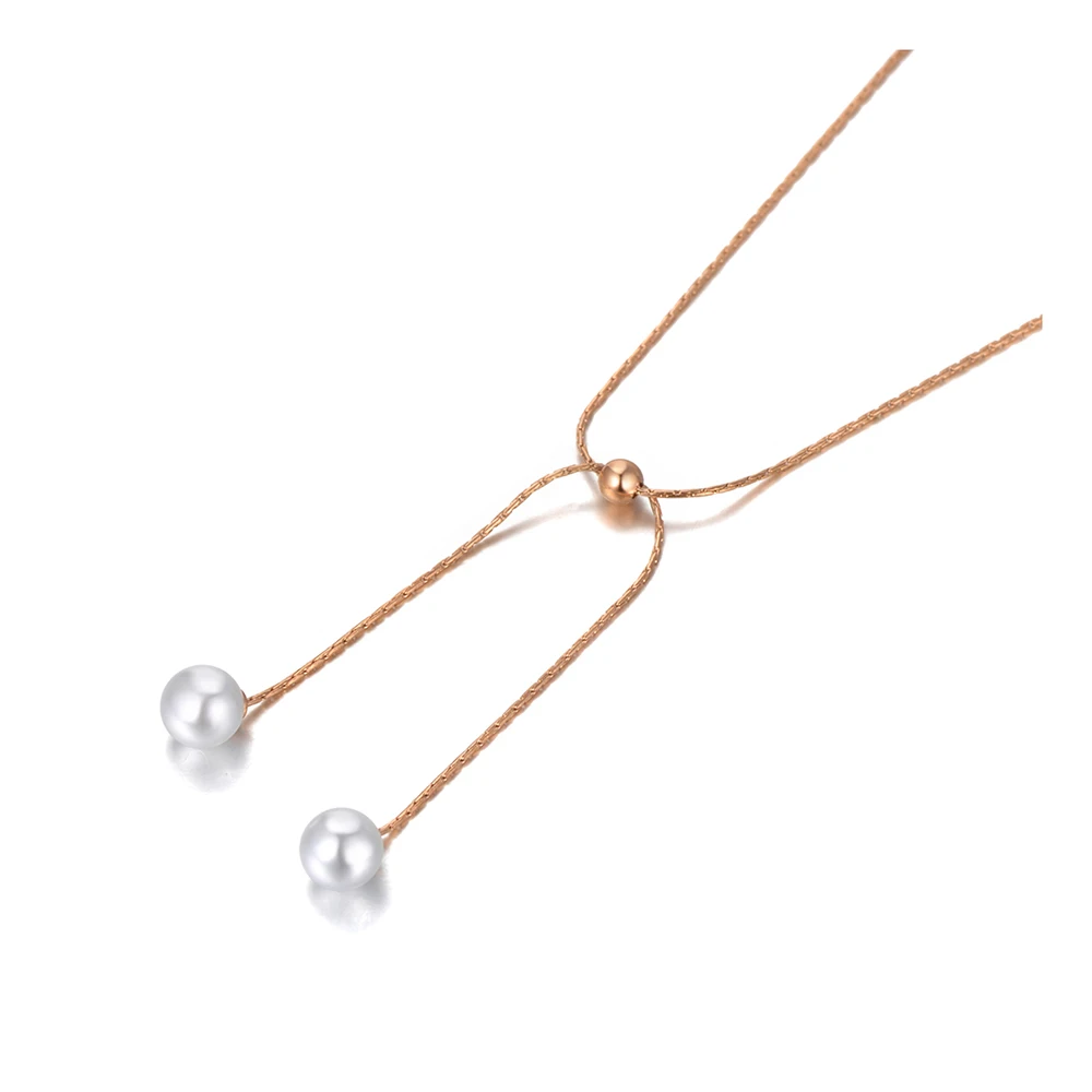 Женское Ожерелье из титановой стали BOBOTUU BN20156, розовое золото, двойное, белое вечерние