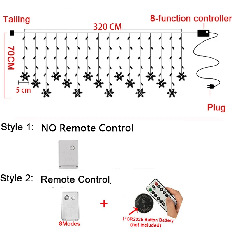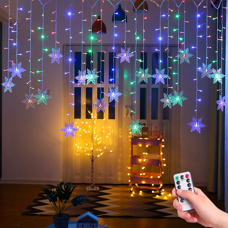 Рождественская светодиодная гирлянда со снежинками и пультом дистанционного управления 2021, водонепроницаемая Волшебная Гирлянда-занавеска для праздника, вечеринки, соединяемая волнистая гирлянда, 3,5 м