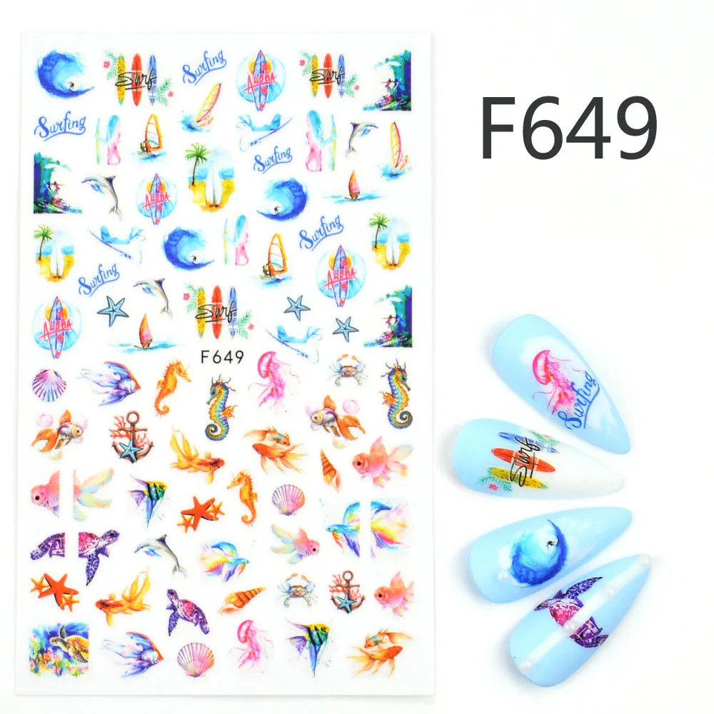 3D клейкие приморские пляжные украшения для ногтей, наклейка для но...