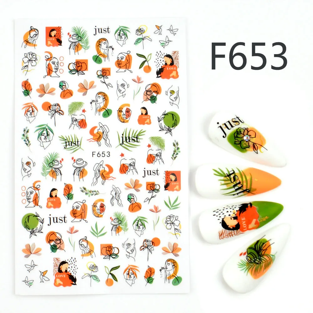 3D наклейки для ногтей, F-653, CA-511 цветов, абстрактное лицо, Гео...