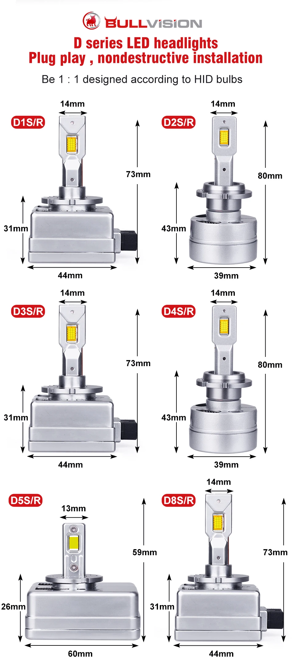 Светодиодная фара Bullvision D1S, 20000лм, ксеноновая, D2S, D3S, D4S, D5S, D8S, D1R, D2R, D3R, D4R, Canbus, без ошибок, CSP светодиодный, s, PTF, высокая яркость, размер 1:1