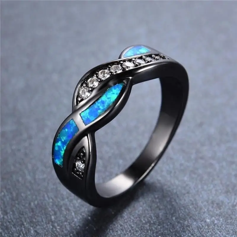 Классическое черное кольцо в форме Креста с голубым огненным опалом модное Трендовое волнистое кольцо женские ювелирные изделия