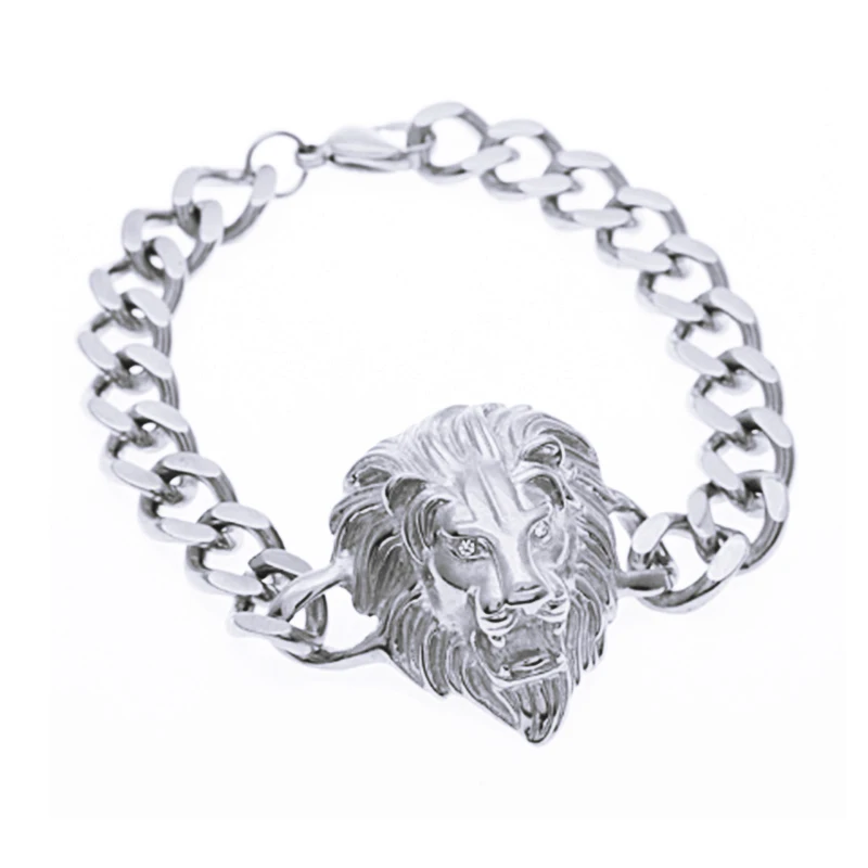 Браслет из нержавеющей стали с золотым львом и подвеской