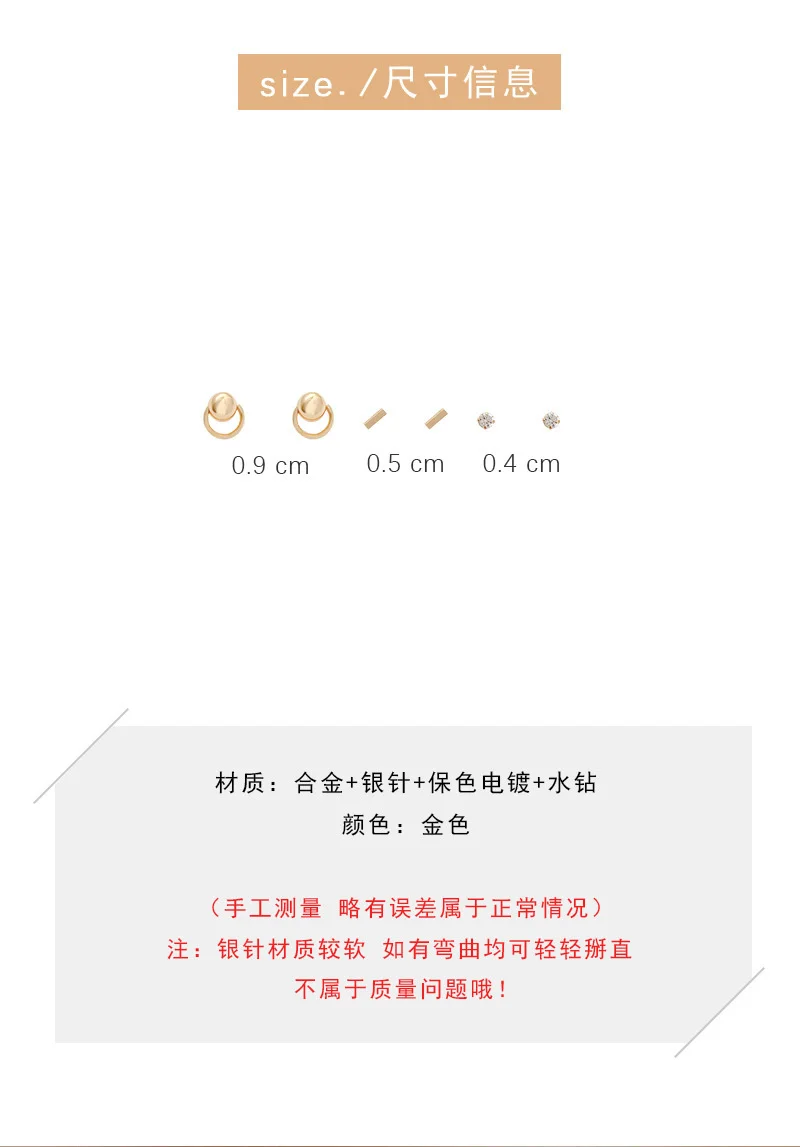 Лидер продаж европейские панковские серьги-гвоздики для Для женщин и мужчин с геометрическим рисунком цвета: золотистый, серебристый покрытие серьги комплект из 3 изделий, паркомпл. зубец серьги