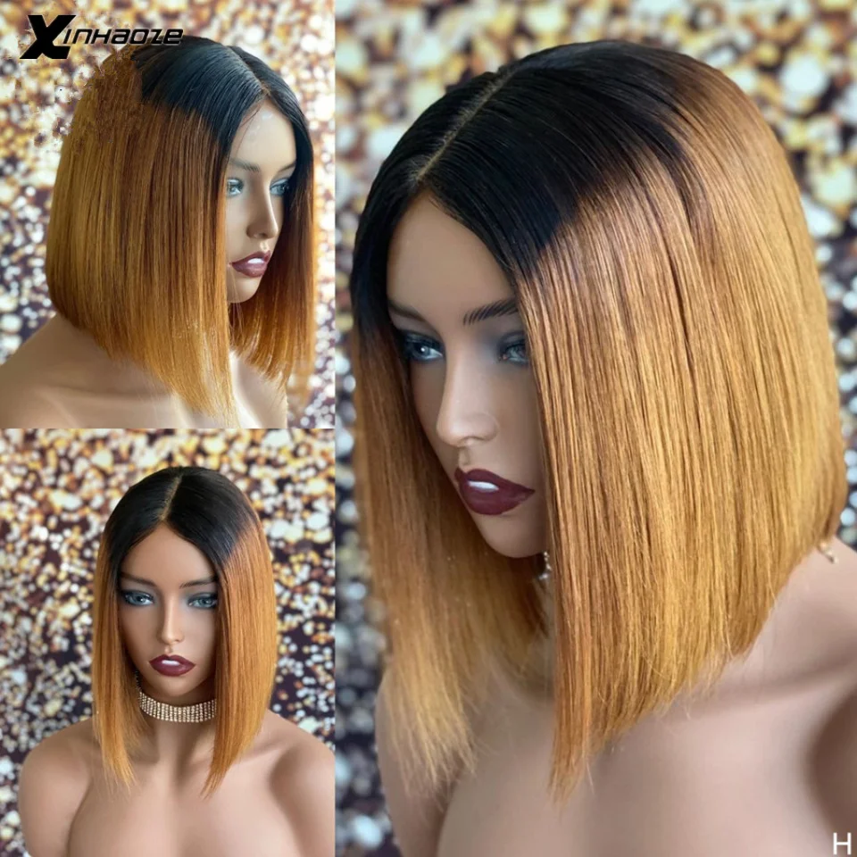 Парики из светлых человеческих волос Омбре, прямые короткие волосы боб 1B27, парики на шнуровке спереди 5x5, парик из искусственного шелка на шнуровке с детскими волосами