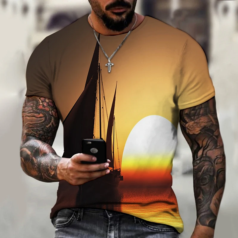 Мужская летняя футболка с коротким рукавом, с 3D-принтом