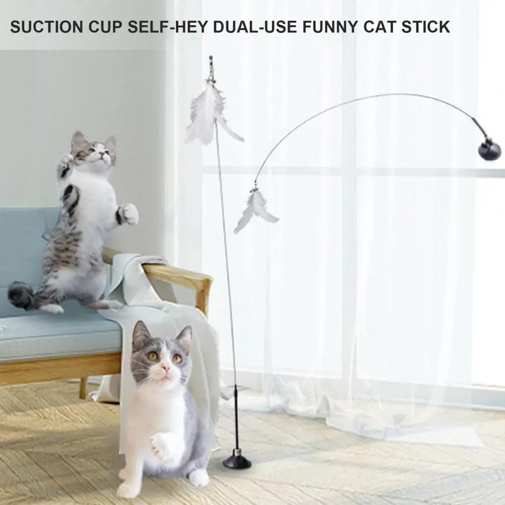 Игрушка-палочка для кошек с присоской, Дразнилка для отдыха и развлечений с питомцами, игрушка с пером, тренировочные принадлежности для кошек