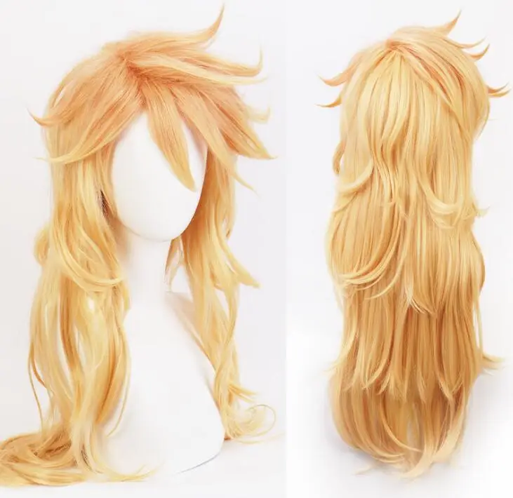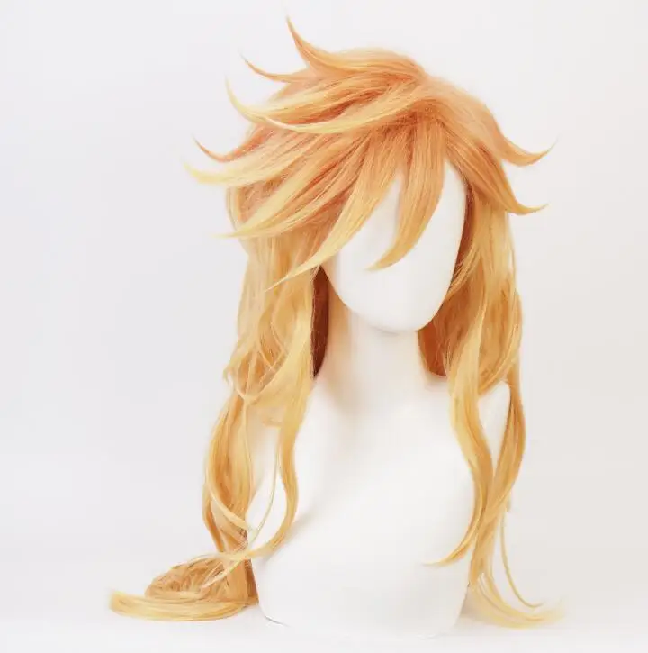 Парик для косплея киметасу из аниме рассекающий демонов, высокотемпературные волосы с золотистым многослойным градиентом, 65 см