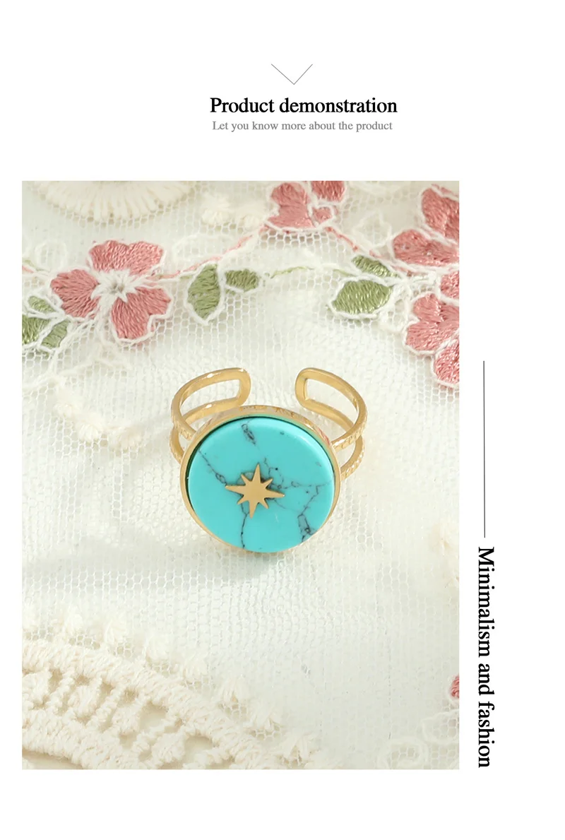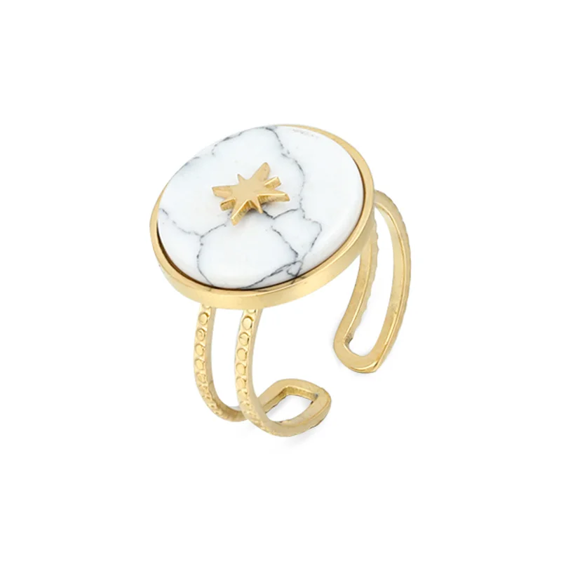 Женские винтажные кольца с бирюзой, открытые кольца золотого цвета из нержавеющей стали с белым натуральным камнем, массивные ювелирные украшения для свадьбы