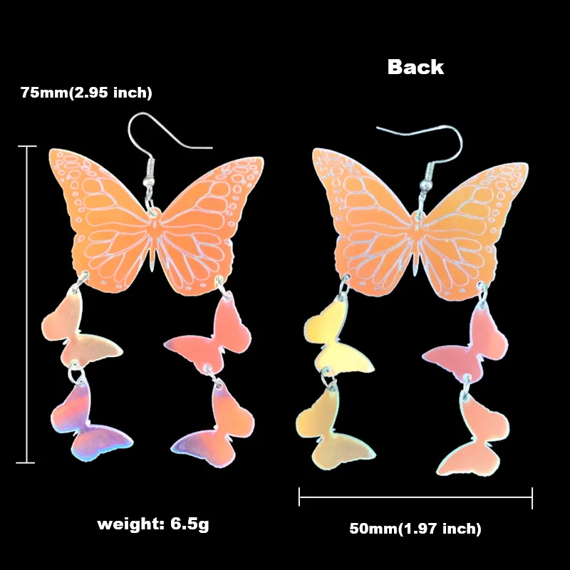 Новое поступление радужных насекомых бабочки акриловые Висячие серьги для женщин лазерная резка Фея радужные бабочки шикарные модные ювелирные изделияМатериал: акрилРазмеры: 5*7,5 смPS: Мы можем настроить любой дизайн и цвет (для настройки, пожалуйста, свяжитесь с нашей службой поддержки клиентов)