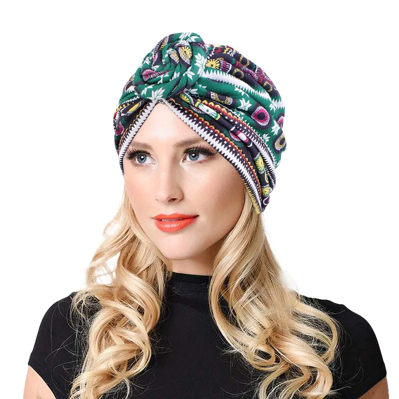 Женский тюрбан Hijabs, Модный популярный тюрбан с принтом в виде цветов, шляпа, Национальный тюрбан с узелком, кепка с принтом, кепка 94