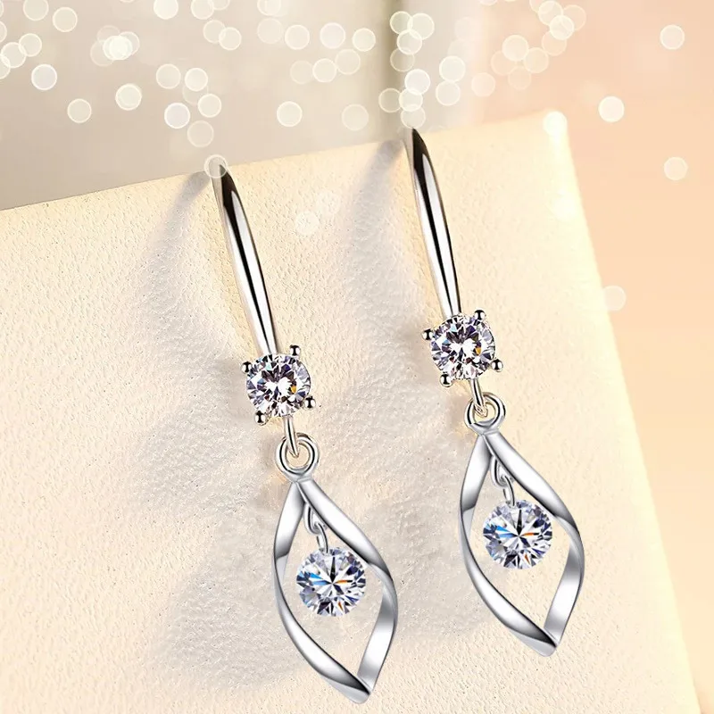 Серьги-подвески женские, серебристого цвета, с круглыми кристаллами...