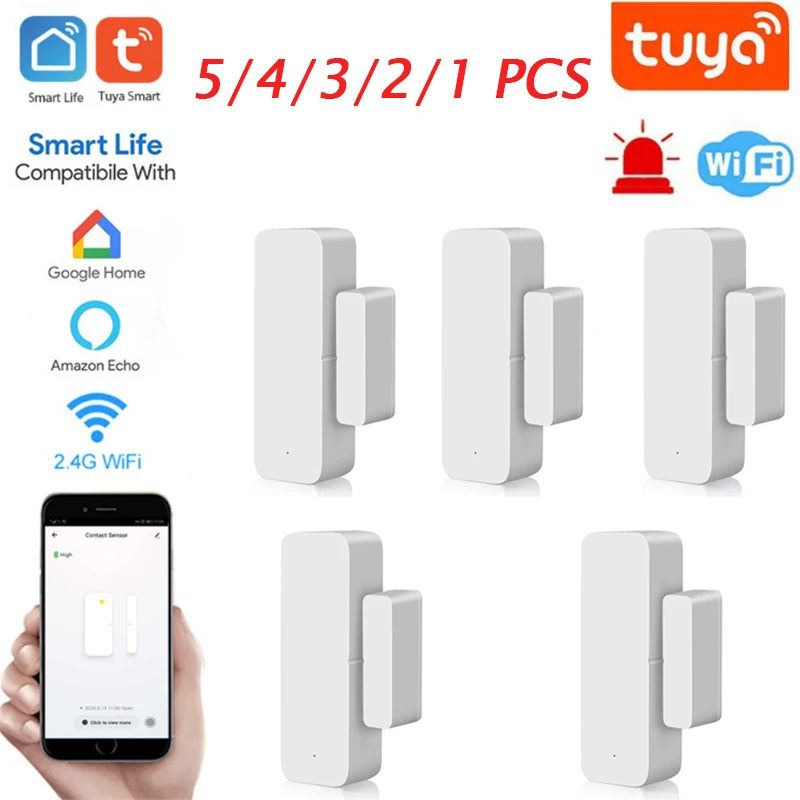 Смарт-детекторы открытиязакрытия двери Tuya, Wi-Fi, домашняя сигнализация, совместима с приложением Alexa Google Home Tuya Smart Life
