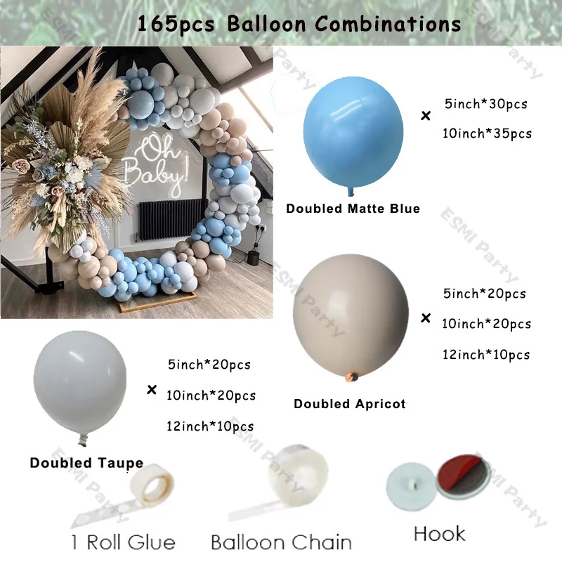 Абрикосовый (5 дюймов * 20 шт., 10 дюймов * 20 шт.)Бесплатно: рулонный клей * 1(100 шт)Воздушная цепь * 1(5 м)Крючок * 3