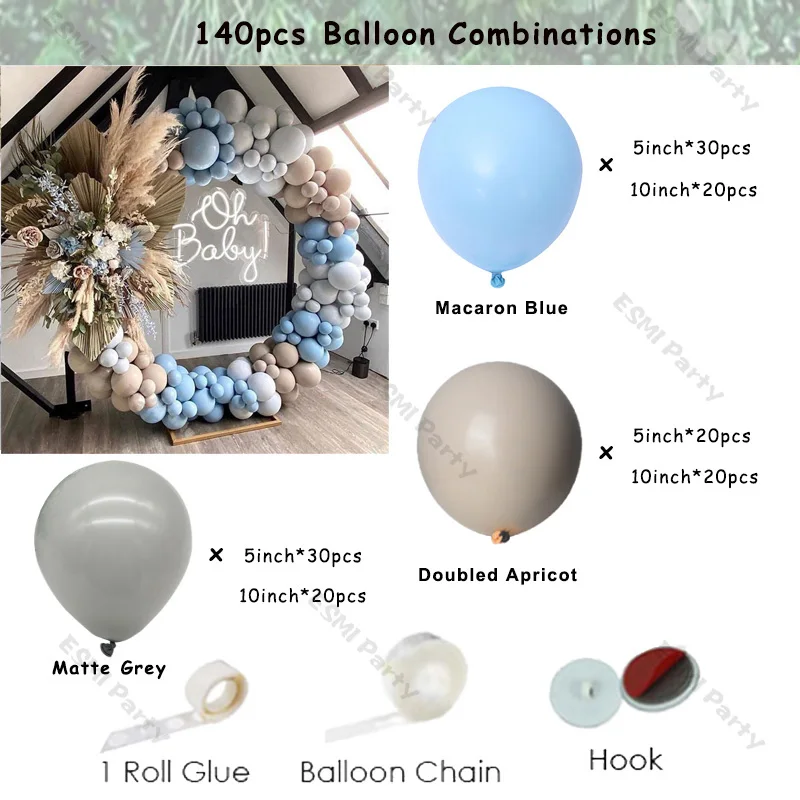 Двойной синий фотоэлемент, детский праздник на день рождения, матовый серый, двойной абрикосовый шар, арка, Декор