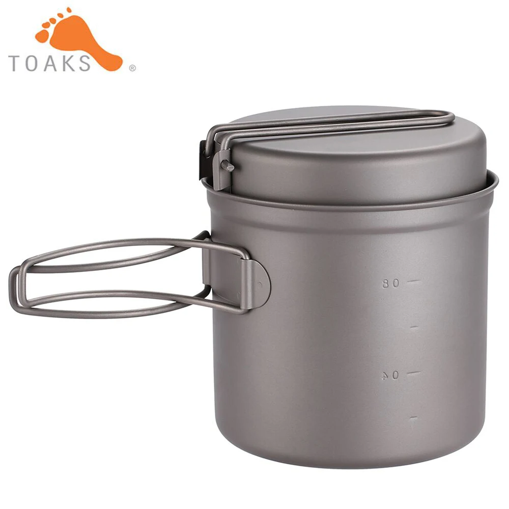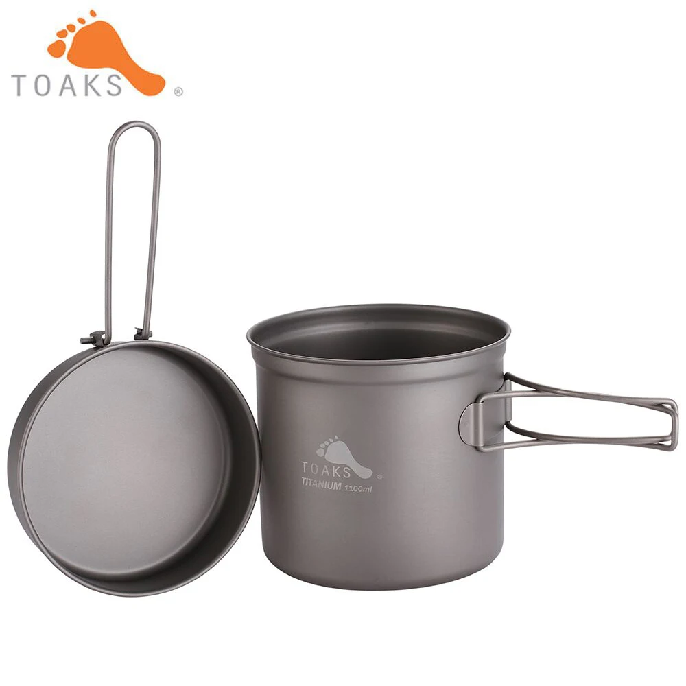 Набор посуды TOAKS 2 в 1, 1100 мл, Ультралегкая титановая кастрюля, сковорода, походная титановая чаша, титановая чашка для пикника