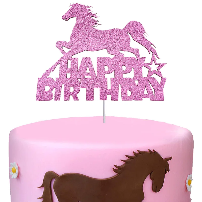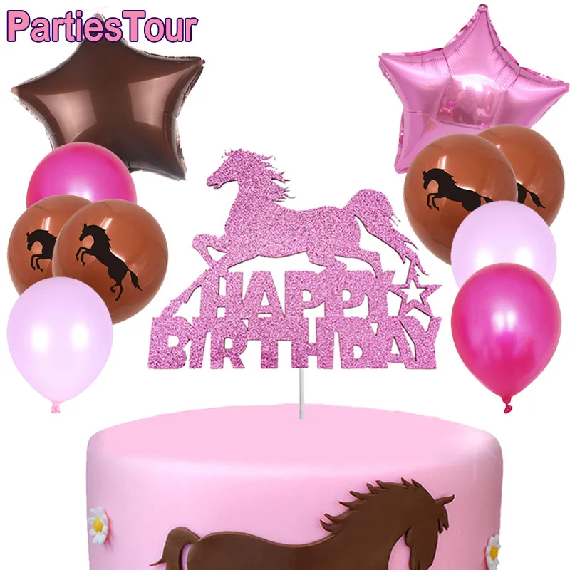 Конные гонки тема вечерние декор воздушный шар лошадь Розовый Блеск лошадь с днем рождения торт Toppper