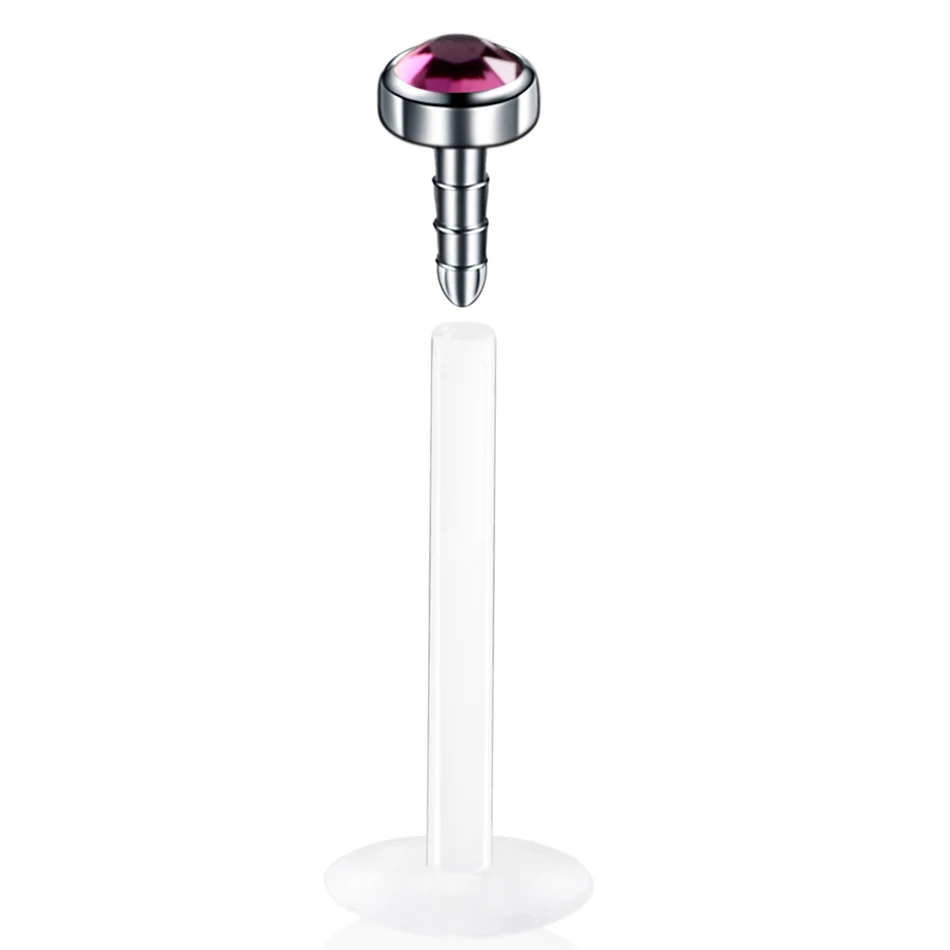 1 шт. титановый Топ для пирсинга губ кольцо для губ Bioplast гибкий стержень Модный кристалл драгоценный камень для уха Козелка завитка тела ювелирные изделия для женщин