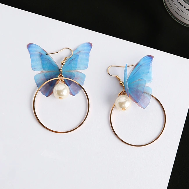 Серьги асимметричные с искусственным жемчугом, модные корейские ювелирные украшения в стиле ретро, с бабочкой, круглыми цветами, длинными массивными крыльями