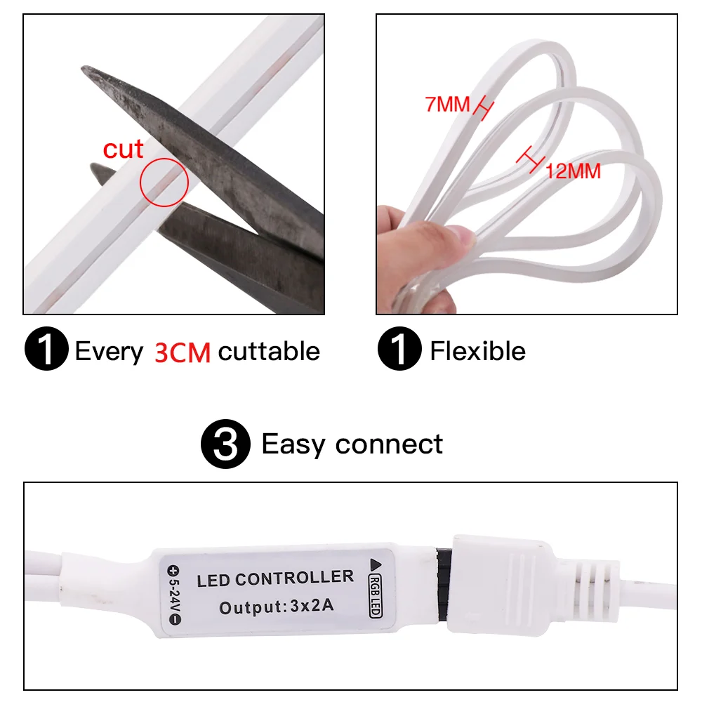 Тип: мягкий гибкий светодиодный неоновый светильник RGBВходное напряжение: DC12VКоличество светодиодов: 96 светодиодов/мТип вилки: штепсельная вилка европейского стандарта/штепсельная вилка американского стандартаМощность: 7-9 Вт/мВодонепроницаемый: водонепроницаемый (IP67)Угол луча: 180 градусовРазмер полосок: 6 мм * 12 ммТип светодиодный: SMD3535Неоновая Длина: 50 см/1 м/2 м/3 м/4 м/5 мМожно разрезать: каждые 3 см можно разрезать